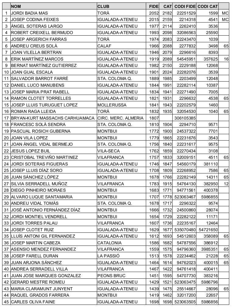 Llista actualitzada el 26/09/2025 a les 15:30h.